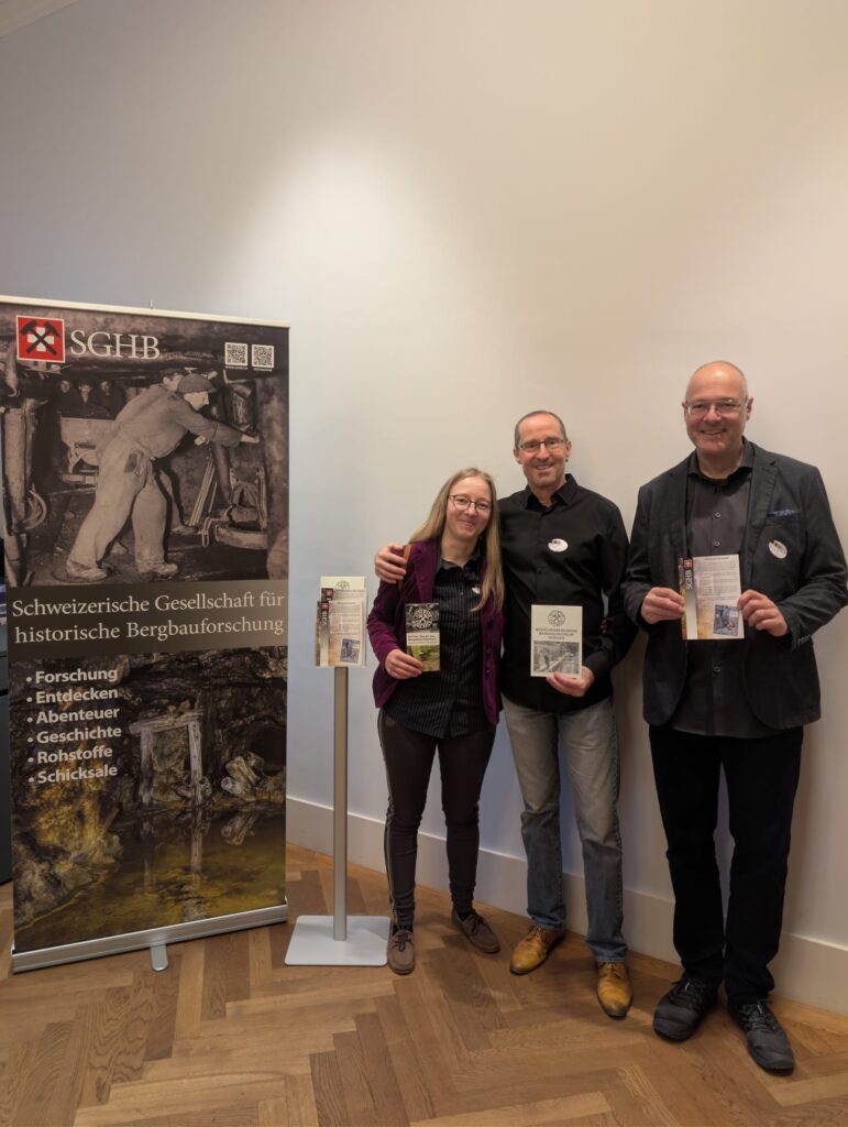 Auch wir als SGHB durften uns zur Schau stellen mittels unserem neuen Roll-Up (von Roger entworfen und gedruckt) und unseren Flyern (ebenfalls von Roger entworfen und gedruckt). Ein voriges Minaria Helvetica sowie Rogers Buch „Bergwerke“ durften ebenfalls ausgestellt werden.