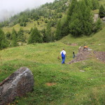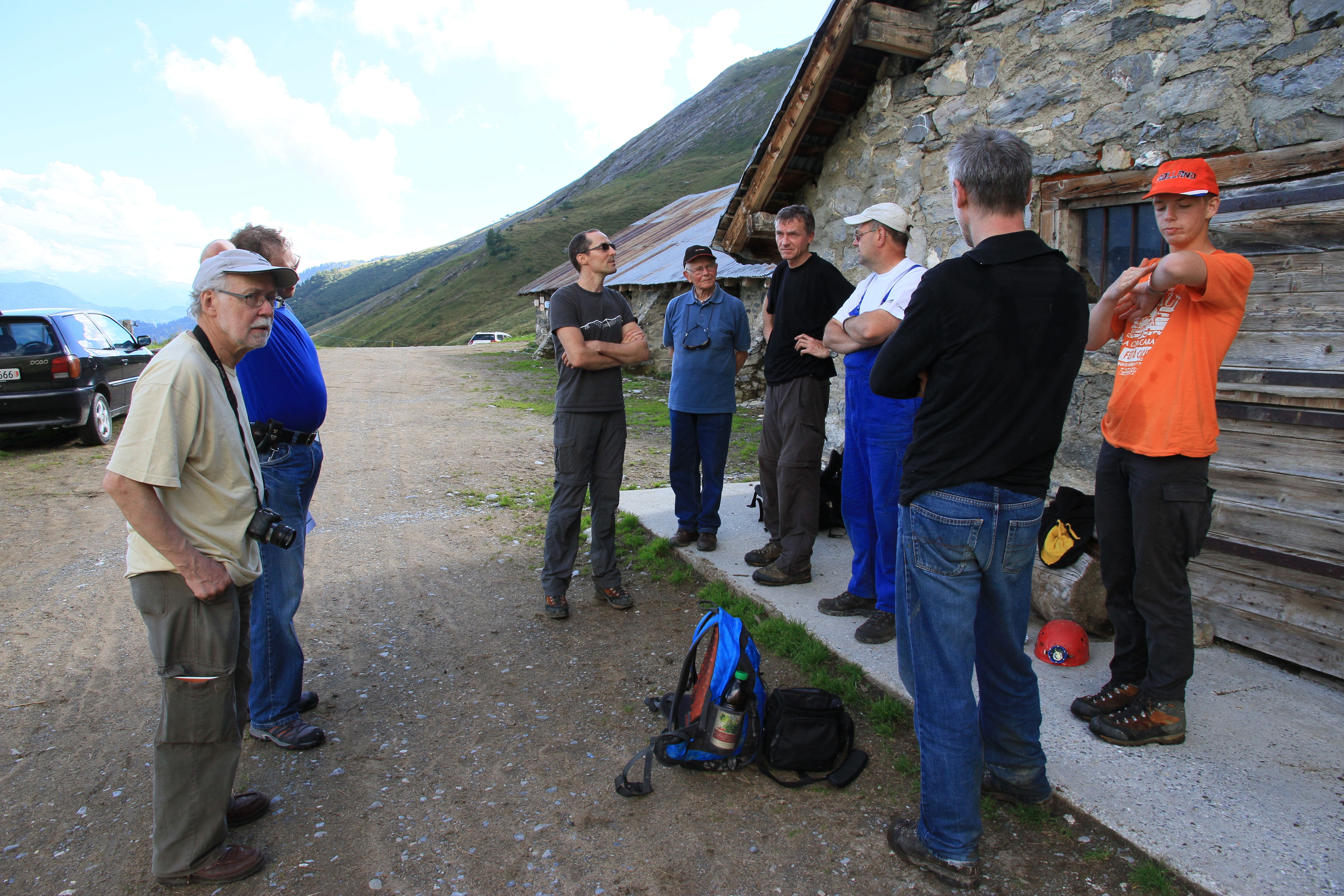 Am Samstag 30. August war es soweit. Das Wetter war bereits die ganze Woche durch unbeständig gewesen. Dennoch wagte sich eine kleine Gruppe verwegener Bergbaufreunde ins Unterwallis, um dort die noch spärlich vorhandenen Spuren eines missglückten Bergbauversuchs im zweiten Weltkrieg zu erforschen. Bei der Hinfahrt wusste das Wetter noch nicht so recht, von welcher Seite es sich an diesem Tag zeigen wollte. Wir sahen zwischen Wolken ein paar vereinzelte Sonnenstrahlen, die mit leichten Regenschauern um die Vorherrschaft an diesem Tag kämpften.