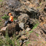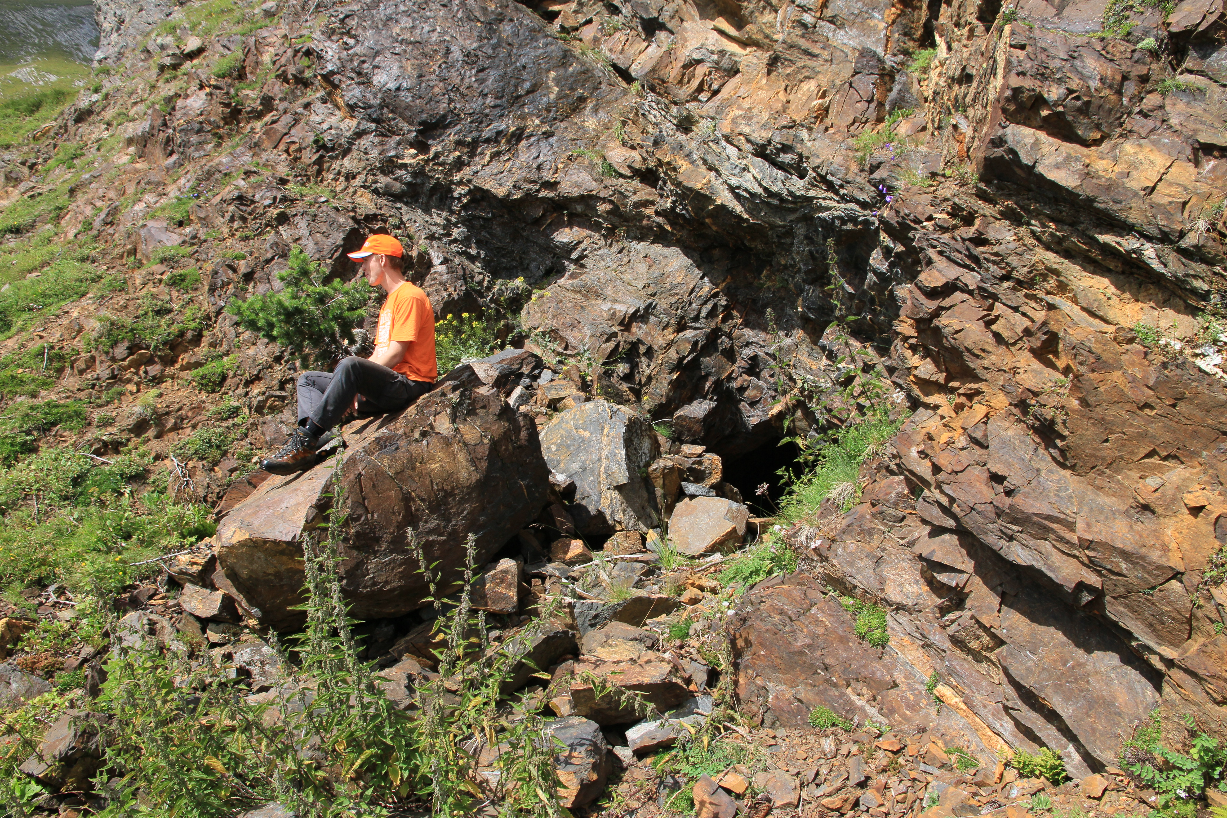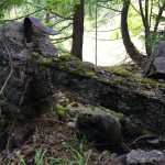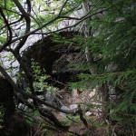 Nach einem gemütlichen Picknick an der Sonne machten wir uns auf den Weg hinauf zum Ziel unserer zweiten Etappe. Über den alten Schlittelweg, den man noch gut im Gelände erkennen konnte, ging es steil bergauf zur oberen Abbaustelle. Dabei zeigte sich wie gut die Kondition der einzelnen Teilnehmer war 🙂 Der letzte Teil des Aufstieges gestaltete sich sehr schwierig, die Frage wie weit es denn noch sei, wurde immer konkreter. Doch obwohl alle erschöpft und müde vom anstrengenden Aufstieg waren, wollte niemand aufgeben. Schon jetzt nicht, wo das Ziel in greifbarer Nähe lag und so kraxelten wir teilweise auf allen Vieren dem Ziel entgegen. An dieser Stelle möchte ich erwähnen, dass der älteste Teilnehmer mit seinen 86 Jahren ohne grössere Probleme mit uns jüngeren mithalten konnte, eine Leistung die von meiner Seite grossen Respekt verdient! Beim Stollen III angekommen lagen dann erst einmal alle flach.