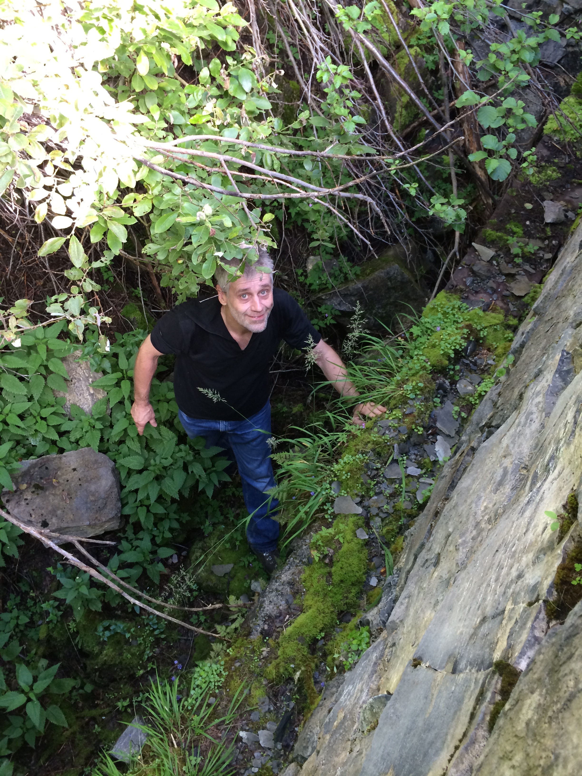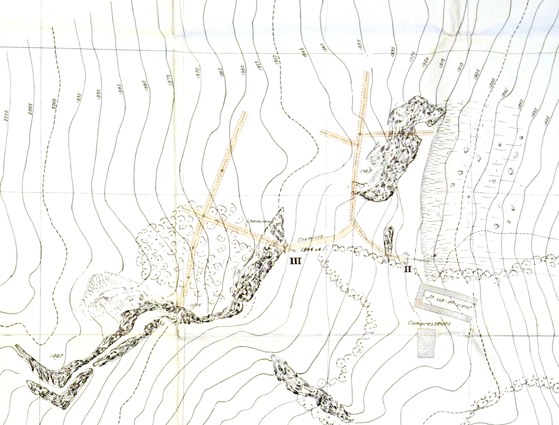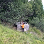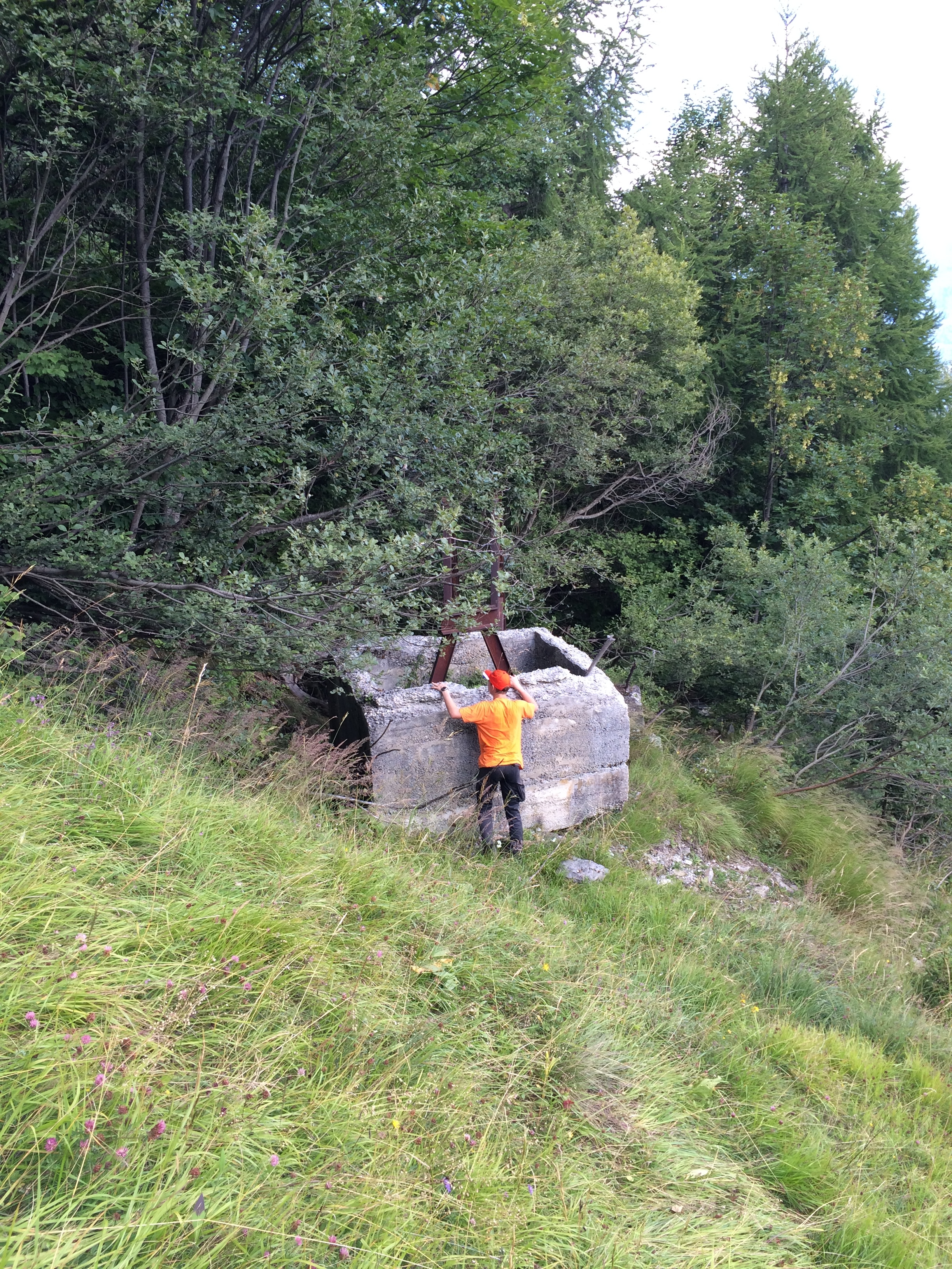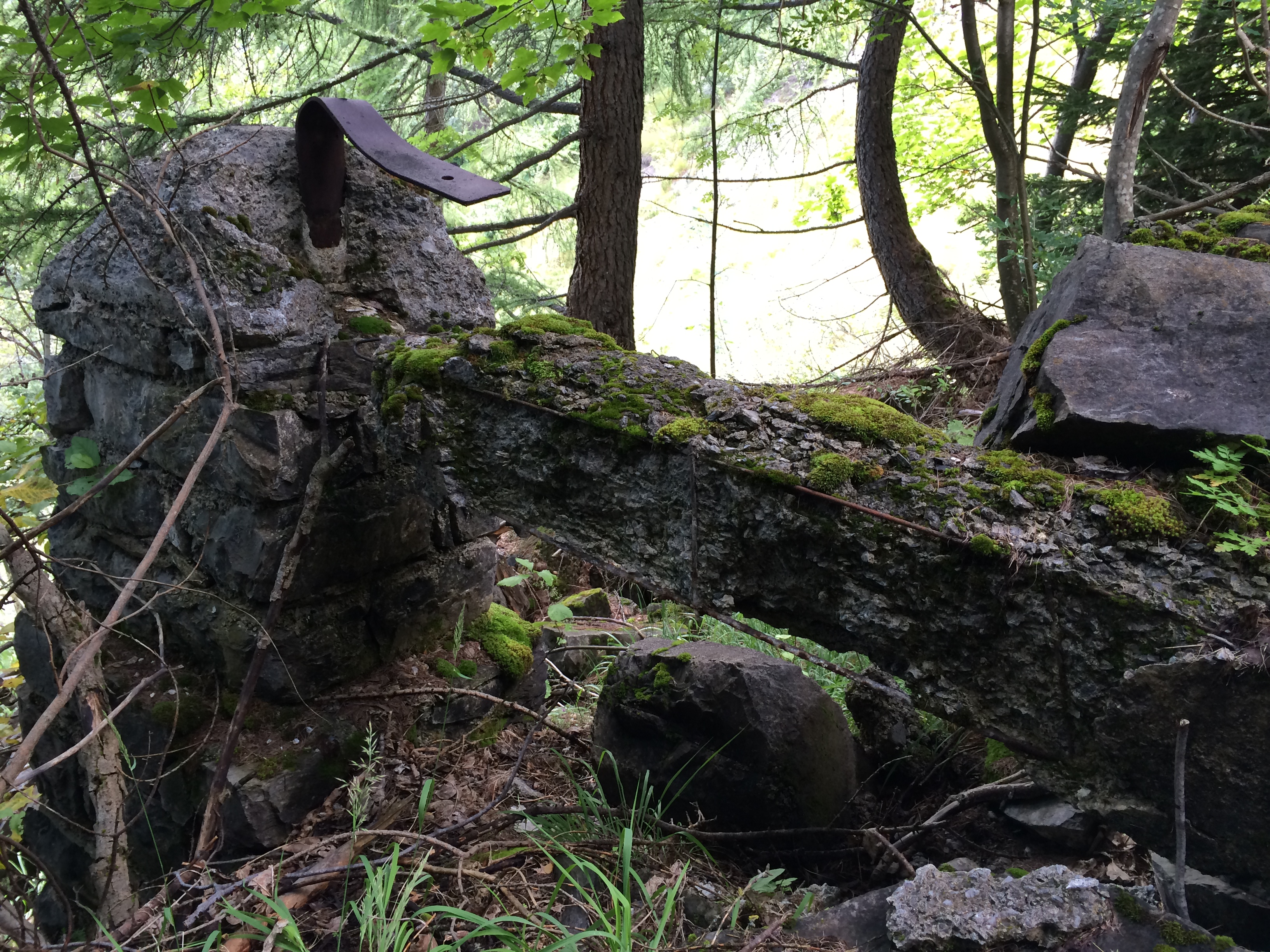Genau zur Mittagszeit kamen wir bei der unteren Abbaustelle Les Pouays an. Wir entschlossen uns diese noch zu begutachten bevor wir dann gemeinsam picknicken würden. Bei genauerem Betrachten des Geländes, konnte man immer noch einige Spuren vom ehemaligen Bergbau erkennen. Darunter waren Fundamente der Seilbahnanlagen, rostige Seile, Seilspanner, verstürzte Stollen und das grosse Rolloch. Und wie geplant hat sich auch langsam der Nebel verzogen und die Sonne zeigte uns, dass der Sommer sich noch nicht endgültig verabschiedet hatte.