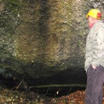Ich robbte ca. 20 m weit hinein. Wir befanden uns hier im obersten Teil des Bergwerkes. Irgendwo hier musste das Stollenmundloch 1 zu finden sein. Für uns war damals klar: Diese Arbeiten waren lange vor dem ersten Weltkrieg ausgeführt worden. Ich schätzte so zwischen 1700 – 1850. In diesen Jahren waren viele kleine Bergwerke angefahren worden, und fast alle waren noch von Hand geschrämmt worden. Denn zur damaligen Zeit war das Schwarzpulver noch sehr teuer.